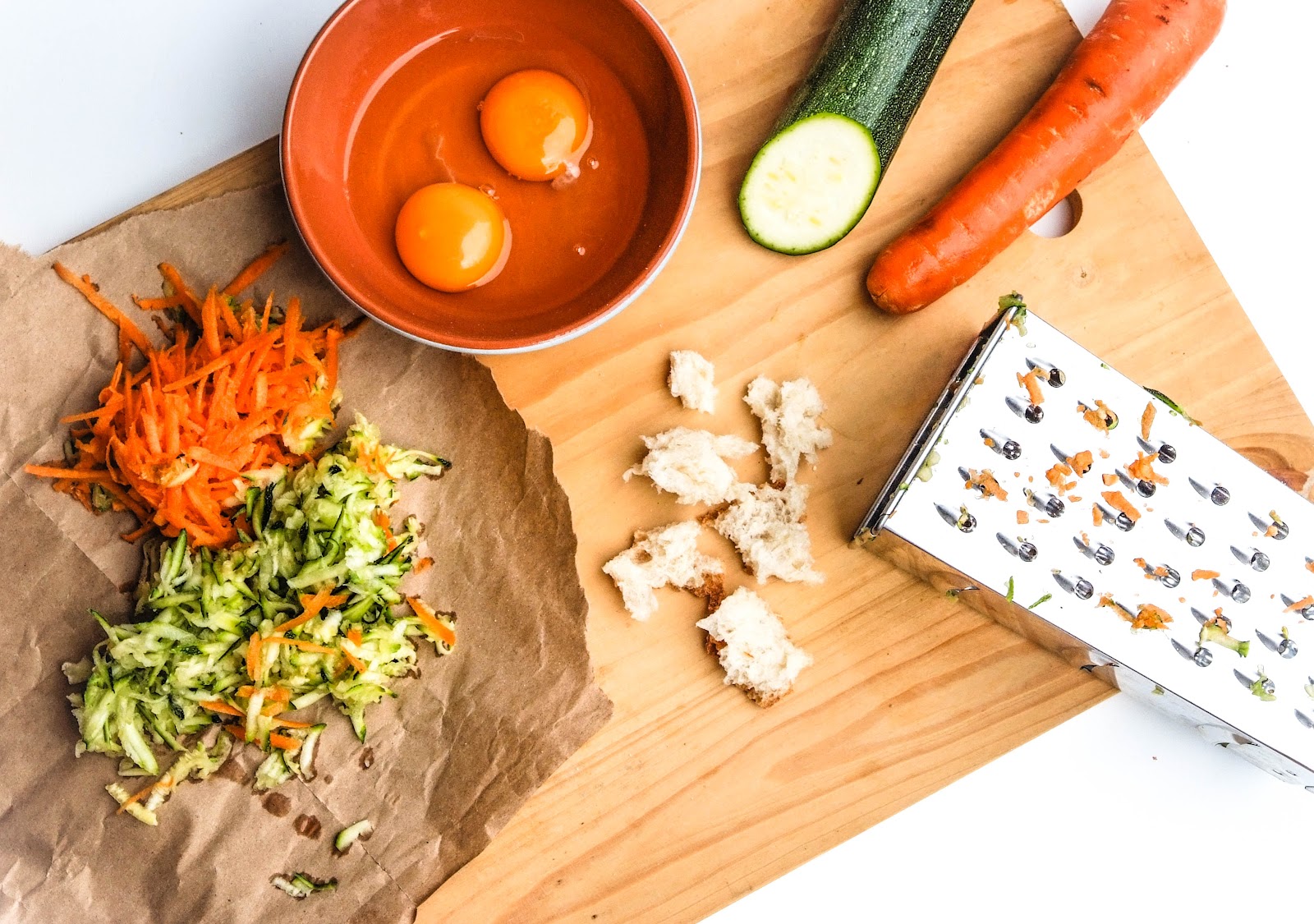 Retire a casca da courgette e rale-a para uma taça. Reserve.